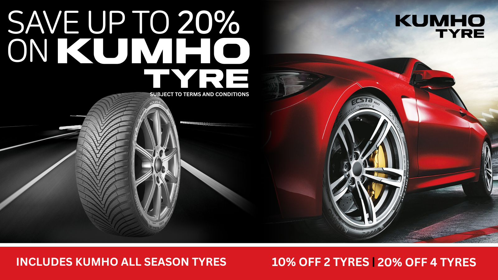 - Customers will receive a 20% discount when purchasing 4 Kumho tyres.