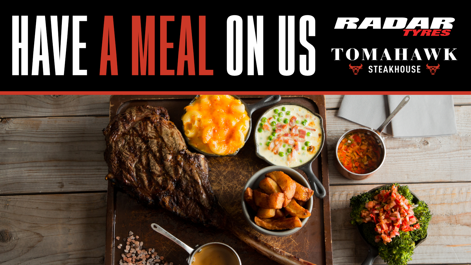 During February and March 2026, Tyre Spot and Radar Tyres have teamed up to offer customers the chance to enjoy a premium dining experience when purchasing Radar Tyres. Buy 2 or more Radar Tyres during this period to enter into a weekly prize draw to win one of 8 Tomahawk Steakhouse vouchers, each with a value of £100.